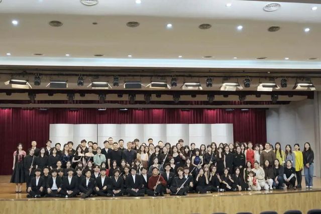 音乐会尾声,何平院长上台发言,高度肯定了参演师生的精彩表现,他表示,这场演出充分展现了学院室内乐工作室教学的实践成果。同时,他希望师生们多关注学校交响乐团、管弦乐以及民乐团的发展,让音乐艺术在校园中持续焕发生机。发言结束后,何平院长邀请全体参演师生上台合影留念,共同定格这个精彩难忘的夜晚。